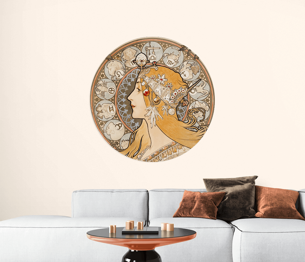 Papier peint rond - Zodiaque ("La Plume") de Alphonse Maria Mucha