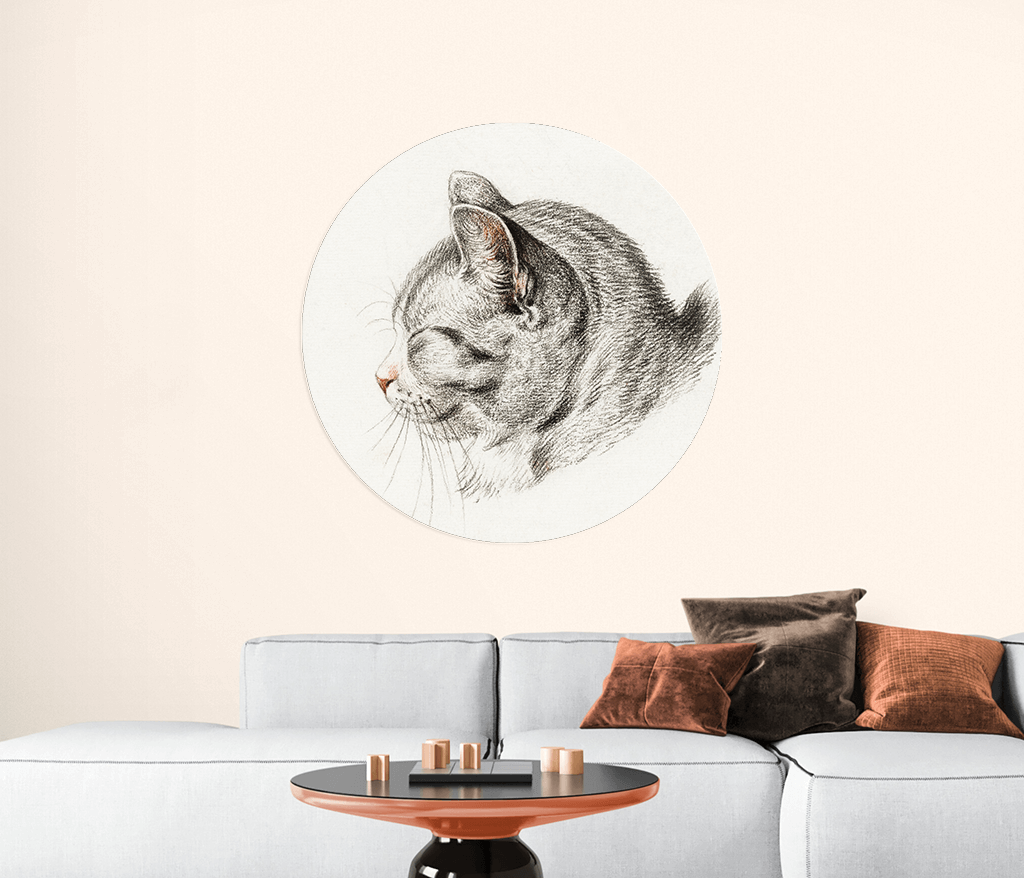 Papier peint rond avec esquisse d'un chat par Jean Bernard