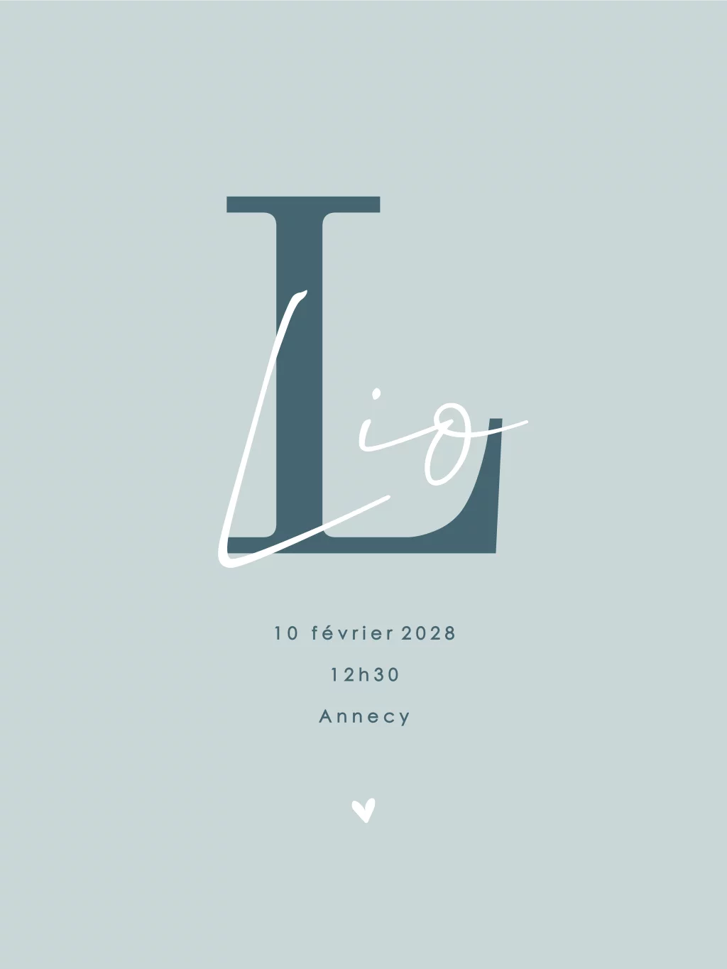 Affiche pour la chambre de bébé en bleu clair avec initiale
