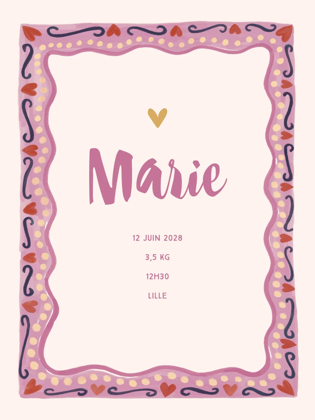 Affiche pour chambre d'enfants avec un joli cadre de cœurs