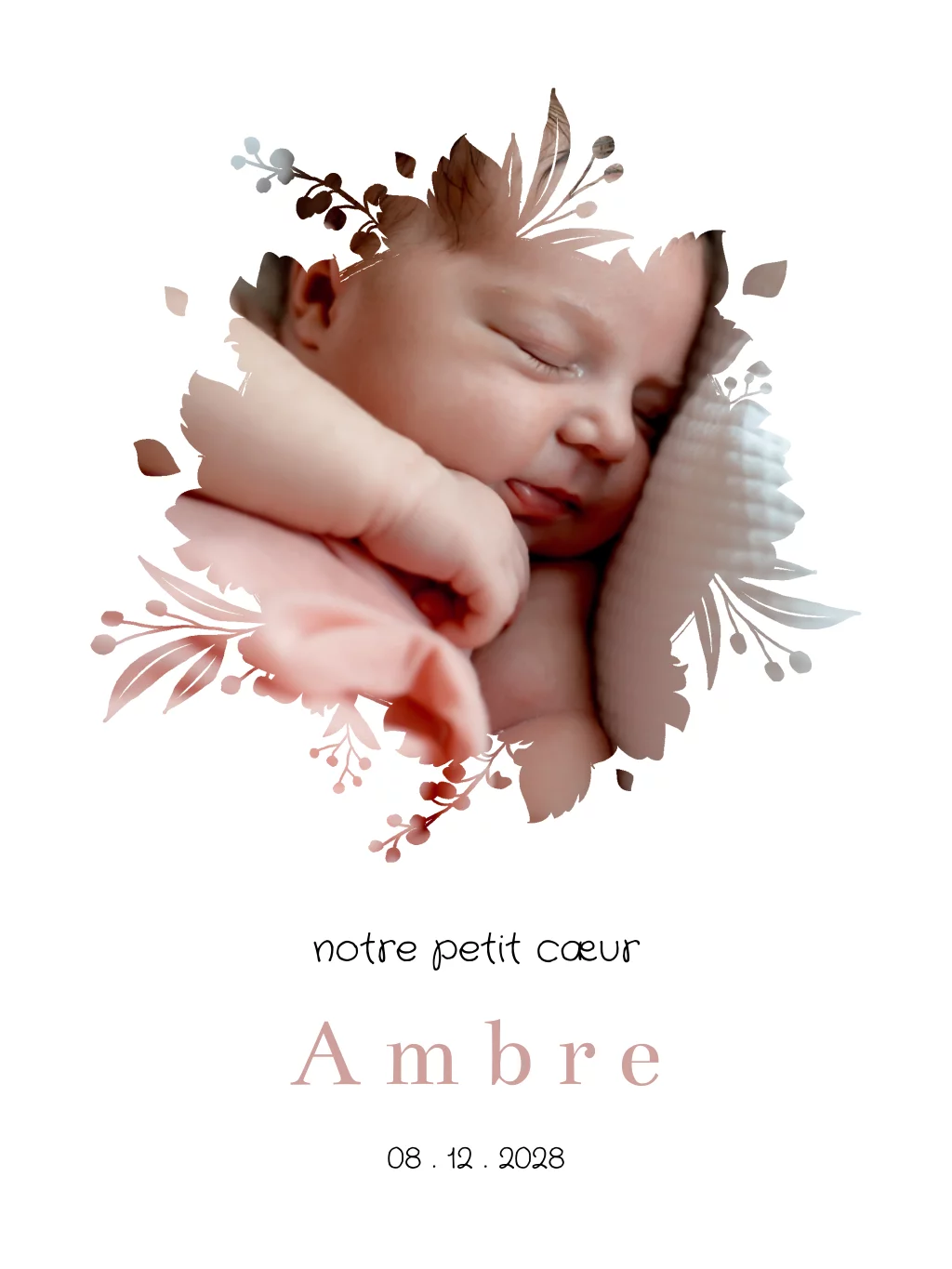 Affiche avec photo de bébé dans un cadre fleuri