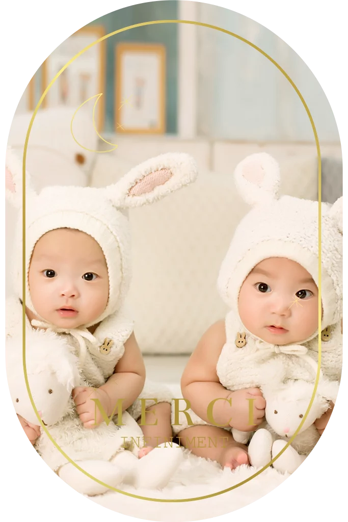 Carte de remerciement avec lune, étoiles, photo pour jumeaux