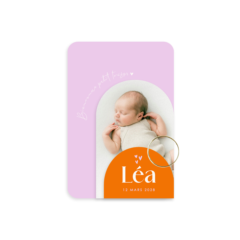Faire-part de naissance multi-cartes en color block orange et lilas
