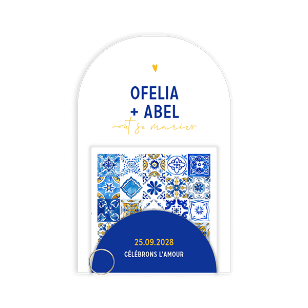 Faire-part de mariage avec tuiles portugaises jaunes et bleues