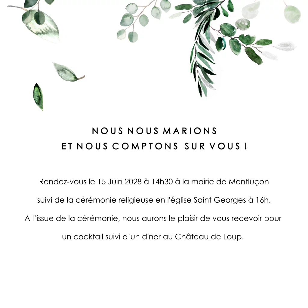 Le papier Biotop est un papier non blanchi au chlore, de couleur naturelle, non couché et imprimable des deux côtés. Il a une surface chaude, naturelle et éclatante qui garantit une excellente imprimabilité et un grand confort de lecture. Remarque : Une feuille d'insertion est l'extra parfait pour vos invitations de mariage. Sur les fines feuilles d'insertion, vous avez la possibilité d'ajouter des informations supplémentaires pour les invités. Nos feuilles d'insertion sont disponibles dans les types de papier suivants : papier transparent (200 g/m2), sans bois (papier sans bois blanc 170 g/m²) et papier Biotop (papier blanc cassé 195 g/m2). Le Biotop est un papier légèrement jaunâtre, le sans bois est du papier blanc. L'avantage du Biotop et du sans bois est que les deux côtés peuvent être imprimés. Le papier transparent peut être imprimé d'un seul côté et a un aspect laiteux. Si vous voyez l'insert de votre choix mais que vous souhaitez l'avoir sur un autre type de papier, veuillez nous contacter et nous le