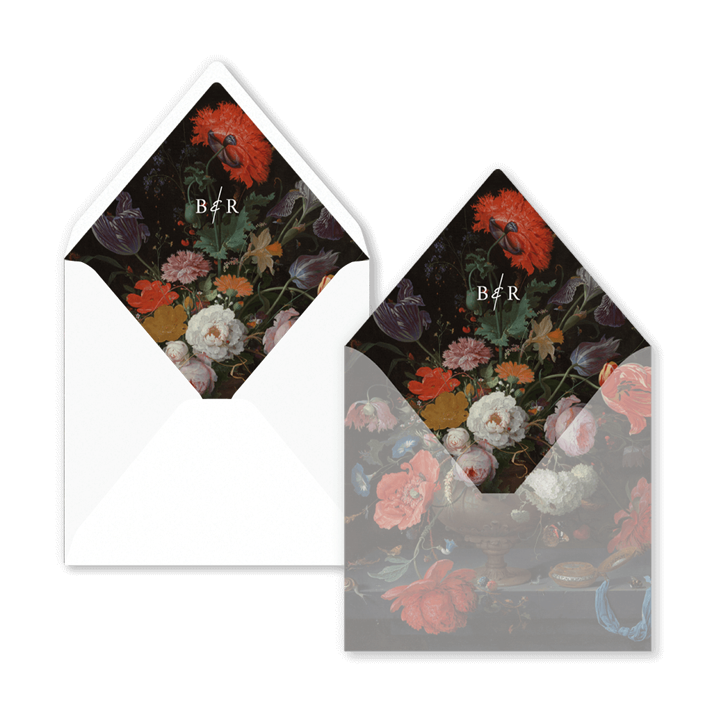 Sur demande, nous pouvons adapter ce design à un autre format ou créer une doublure assortie à votre faire-part de mariage.