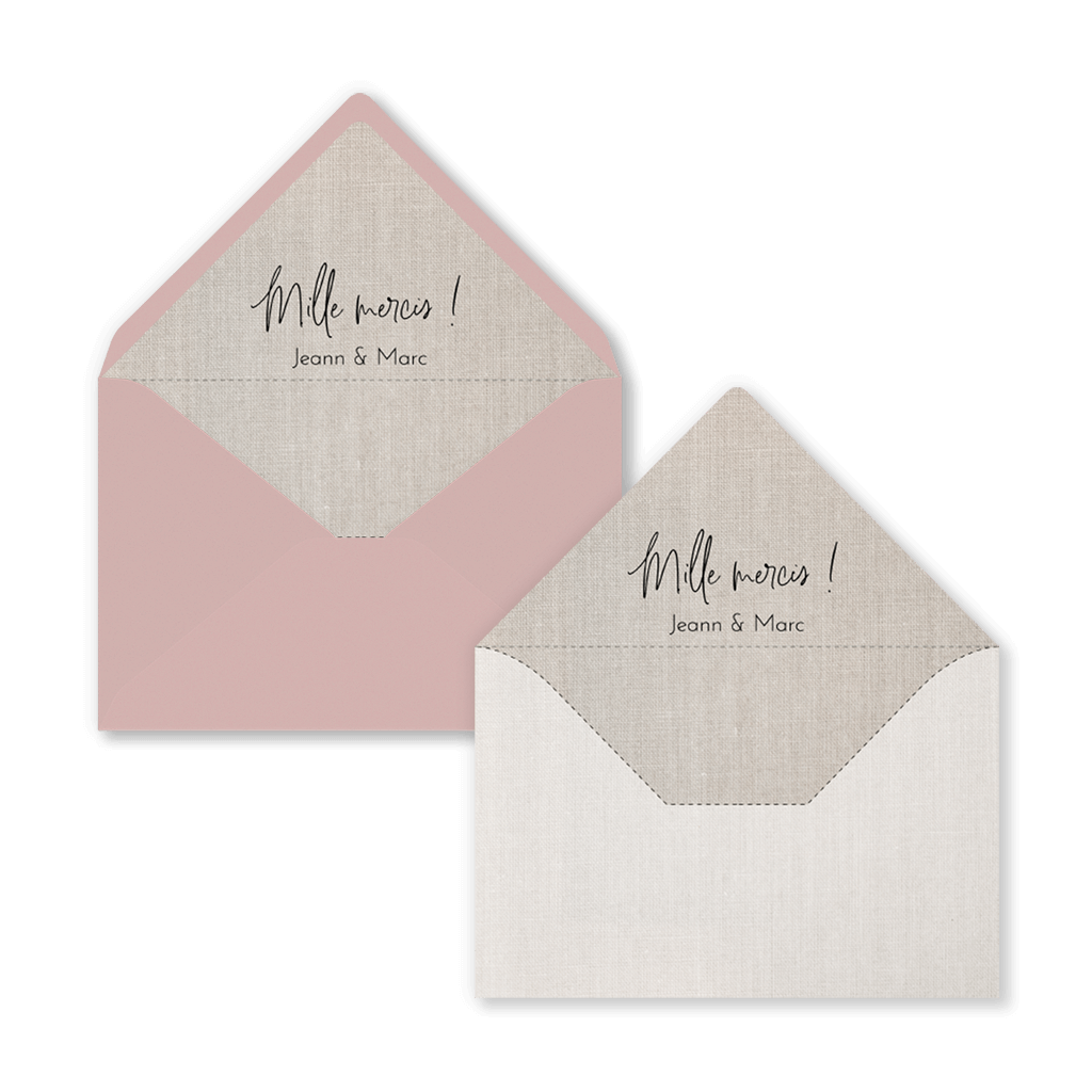 Sur demande, nous pouvons adapter ce design à un autre format ou créer une doublure assortie à votre faire-part de mariage.
