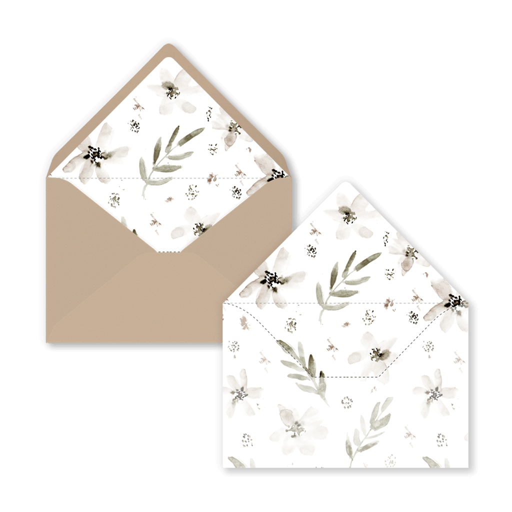 Sur demande, nous pouvons adapter ce design à un autre format ou créer une doublure assortie à votre faire-part de mariage.