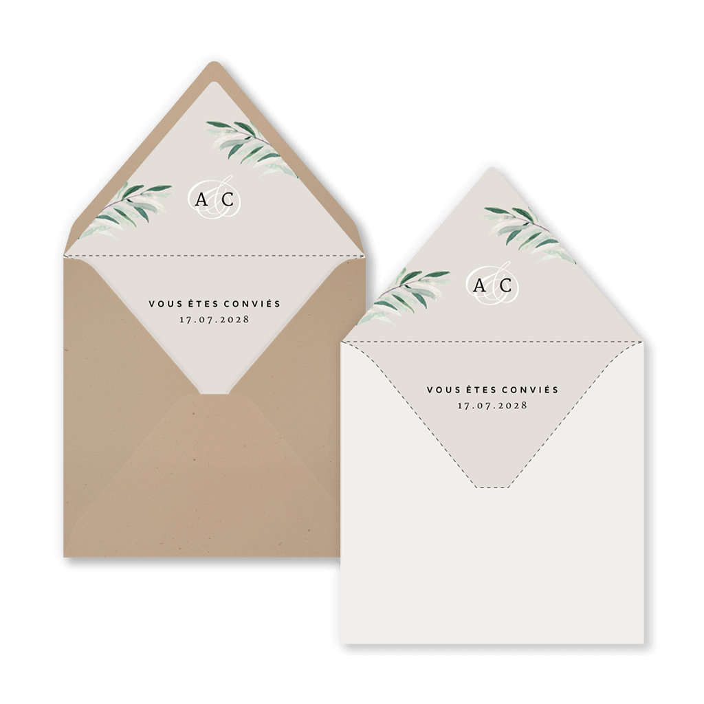 Sur demande, nous pouvons adapter ce design à un autre format ou créer une doublure assortie à votre faire-part de mariage.