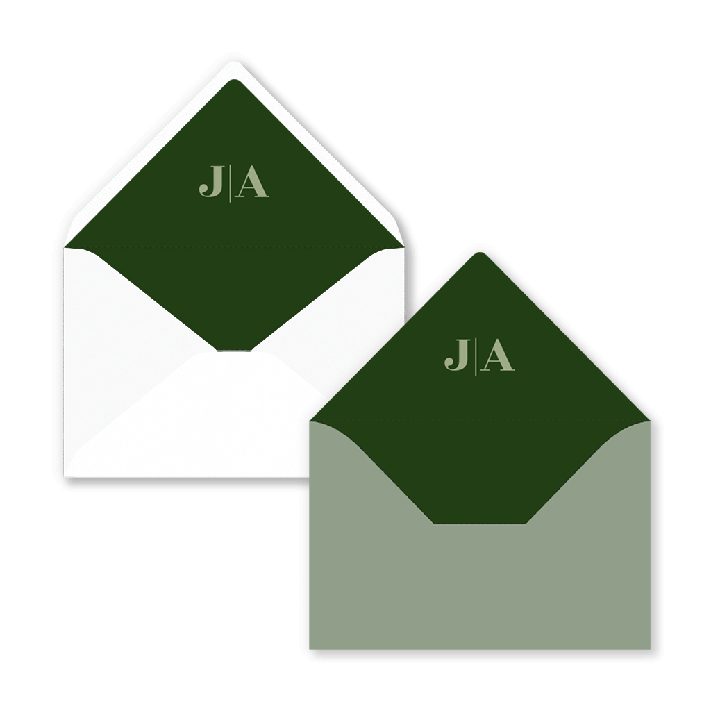 Intérieur enveloppe fond vert avec initiales, 12 x 18 cm