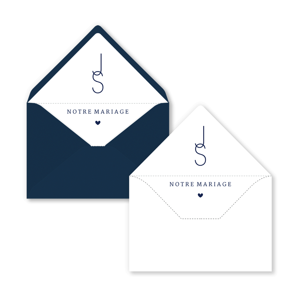 Intérieur enveloppe avec initiales et texte à personnaliser