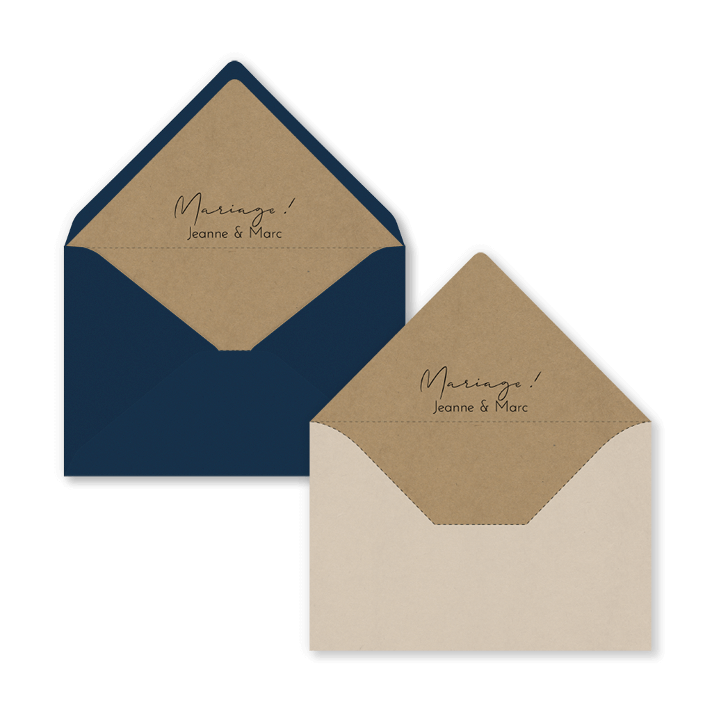 Sur demande, nous pouvons adapter ce design à un autre format ou créer une doublure assortie à votre faire-part de mariage.