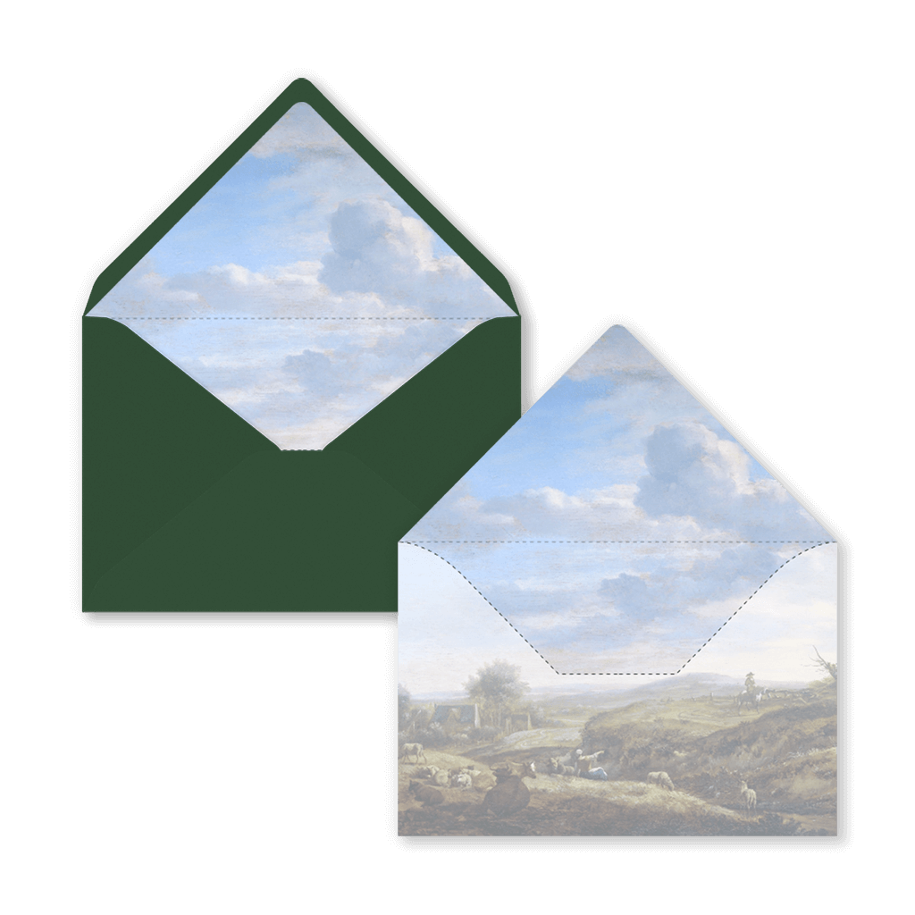 Intérieur enveloppe avec peinture de Adriaen van de Velde, 12 x 18 cm