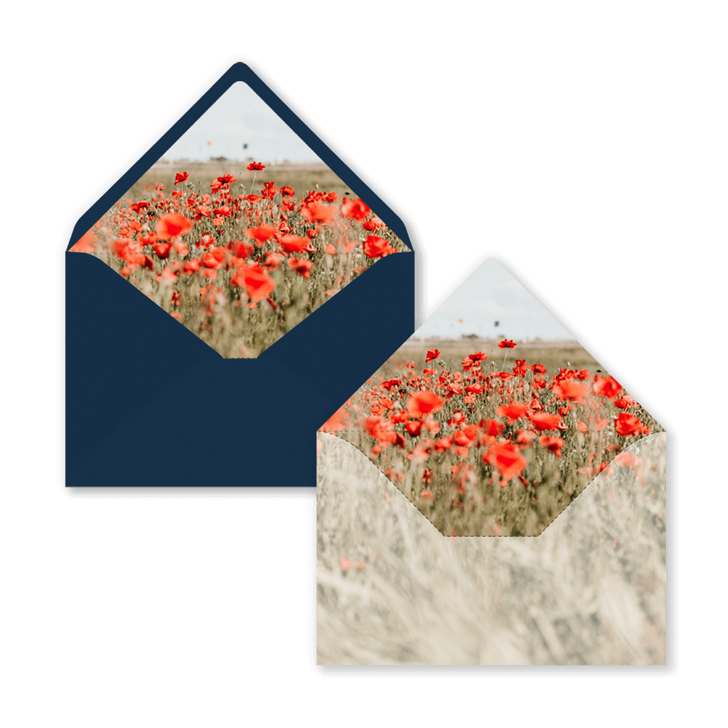 Sur demande, nous pouvons adapter ce design à un autre format ou créer une doublure assortie à votre faire-part de mariage.