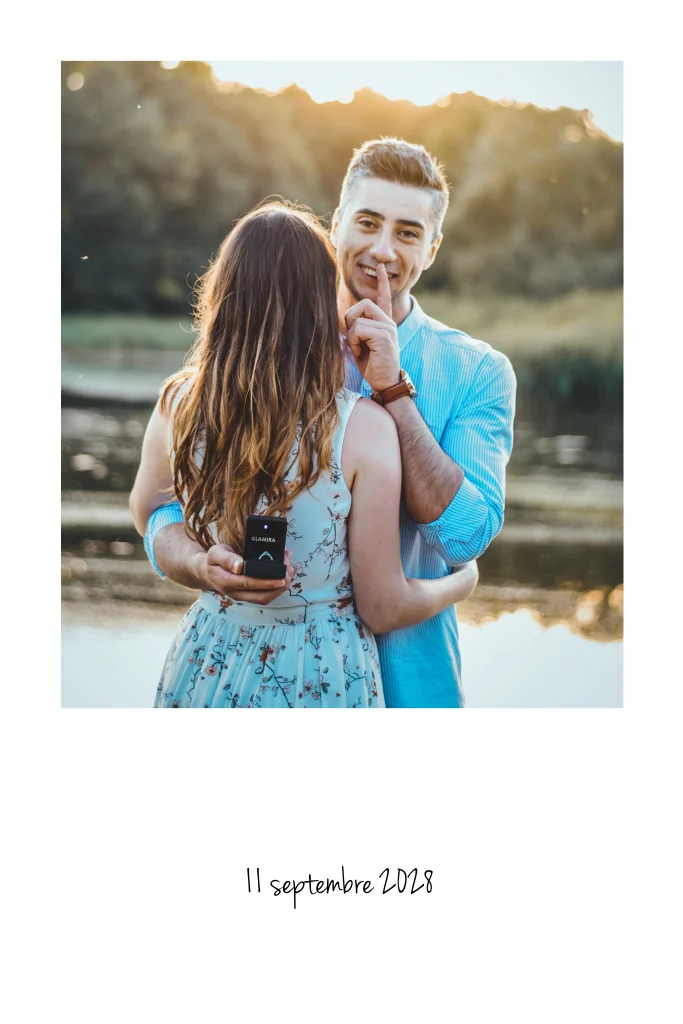 Sur ce faire-part, vous pouvez inscrire vos prénoms et le texte en dorure sur la couverture. Sélectionnez le type de dorure que vous souhaitez utiliser dans l'option "couleur".