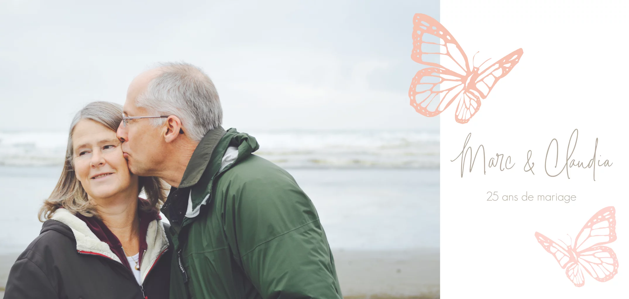 Invitation anniversaire mariage avec papillons discrets et une photo