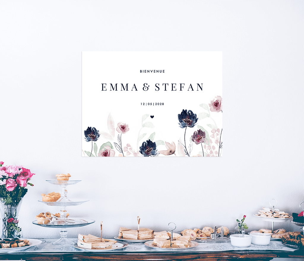 Affiche de bienvenue avec de jolies fleurs à l'aquarelle