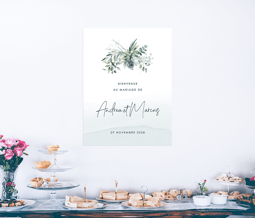 Affiche de bienvenue dans les tons hivernal avec des feuilles