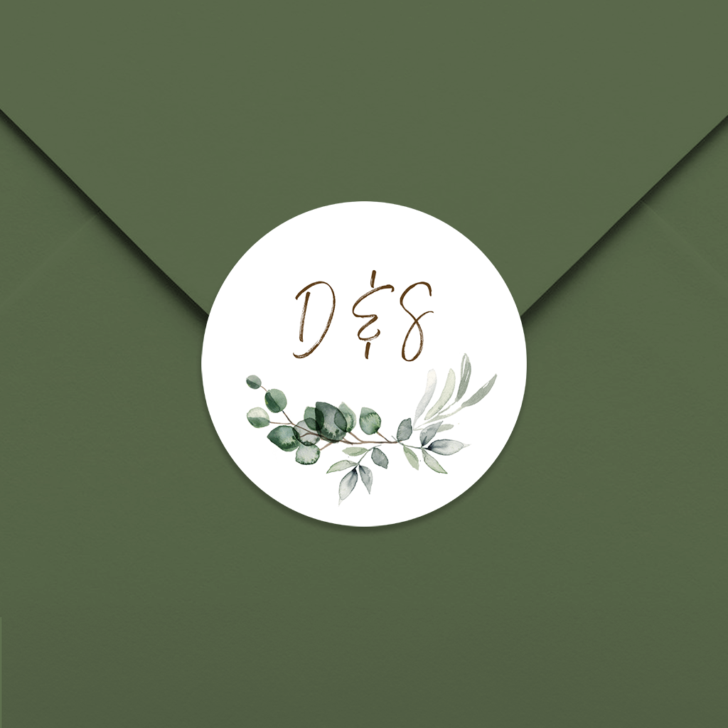 Autocollants avec feuilles d'eucalyptus et des initiales - 25 pièces