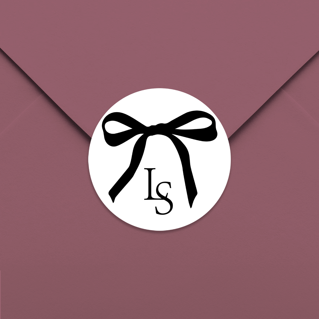 Autocollant avec noeud noir et initiales des mariés - 25 pièces