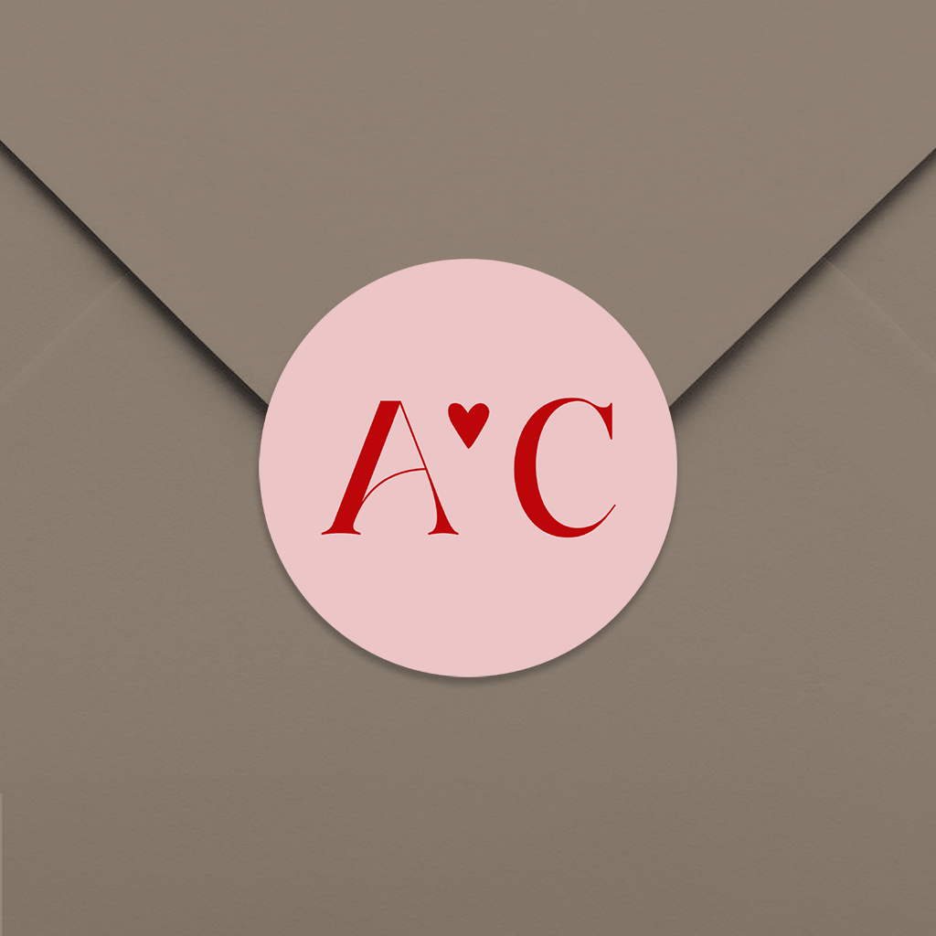Autocollant tendance avec initiales rouges sur fond rose | 25 ex.