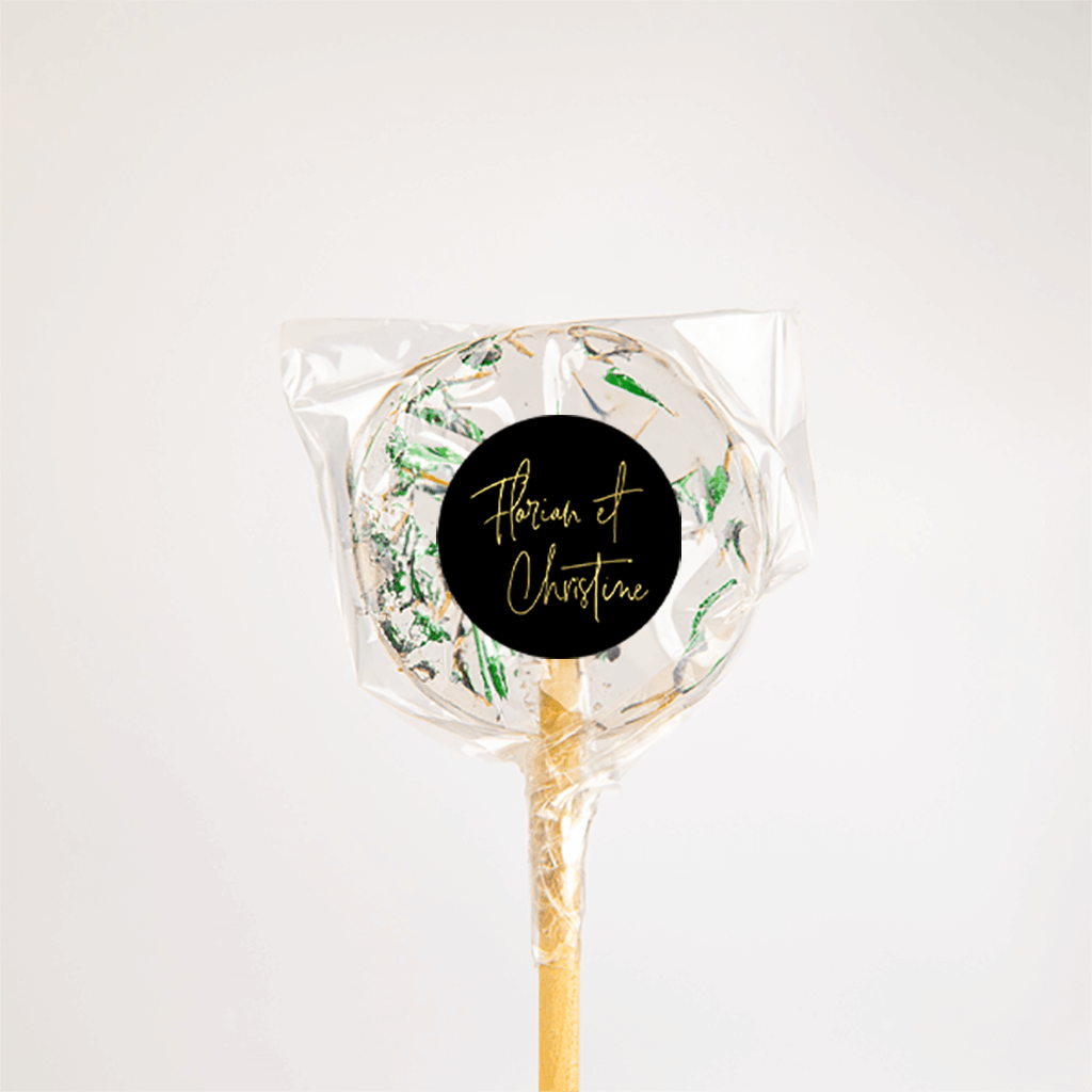 Autocollants avec fond noir et les prénoms des mariés - 25 pièces