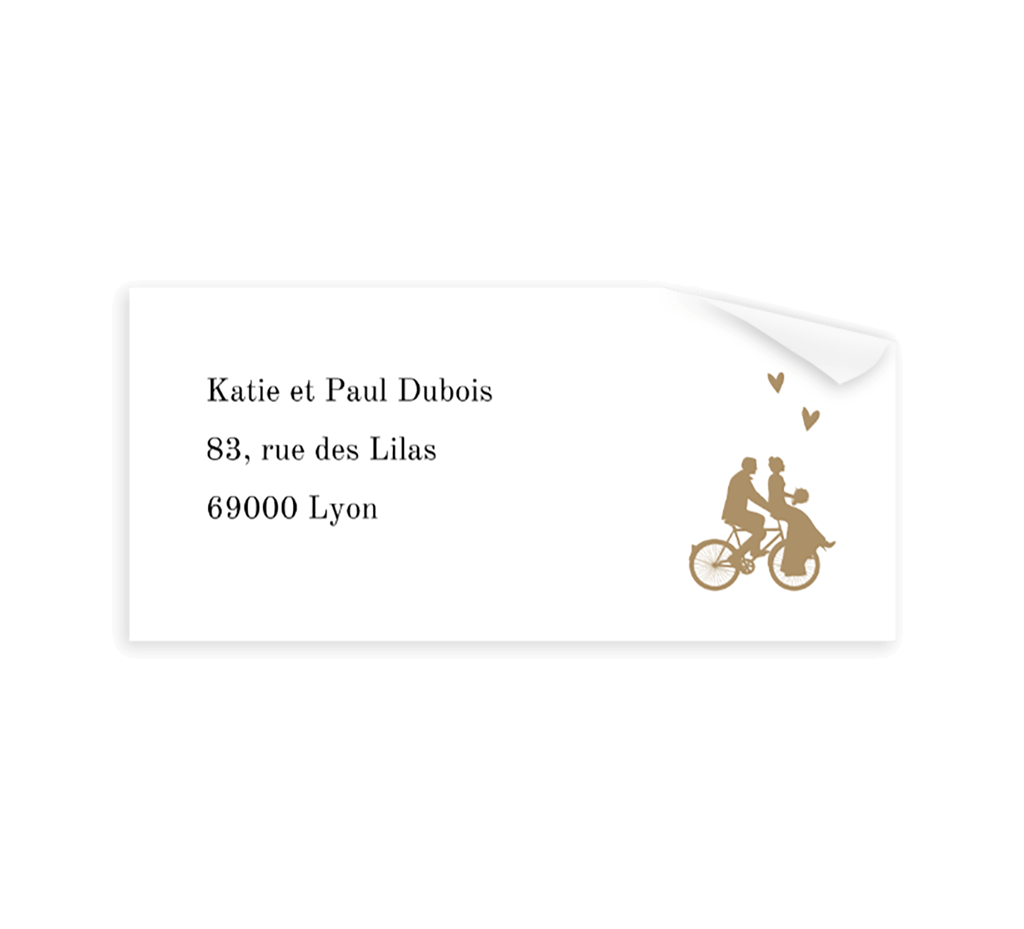 Étiquette d'adresse avec un couple sur un vélo
