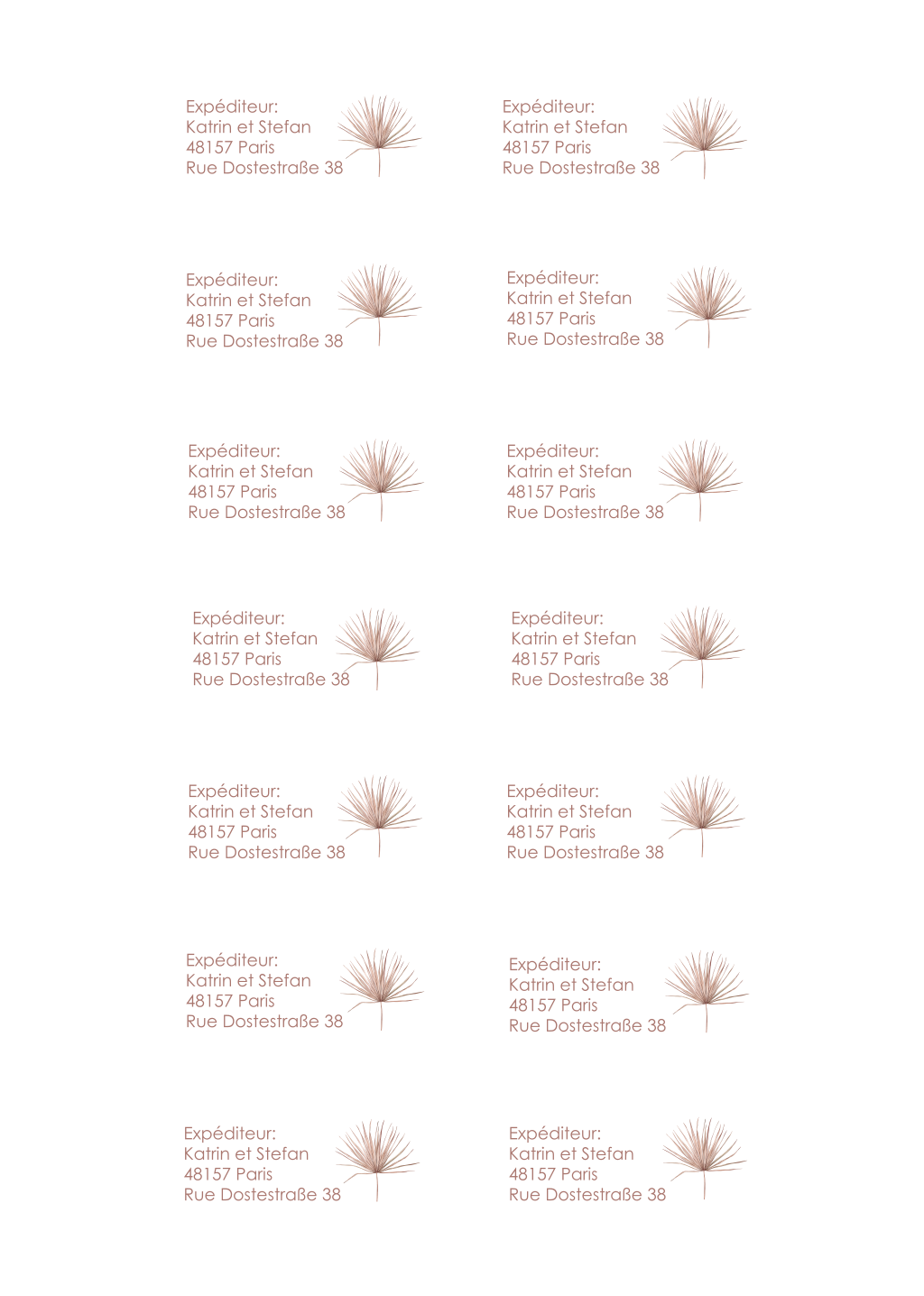 Étiquette d'expéditeur avec des branches 65x34mm 14 pièces