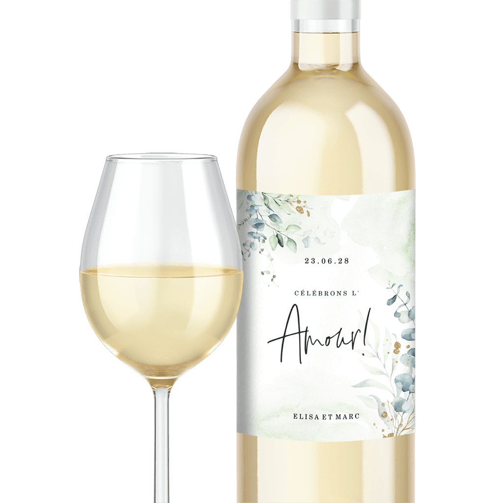 Étiquette de bouteille avec des branches d'eucalyptus à l'aquarelle - 4 pièces.