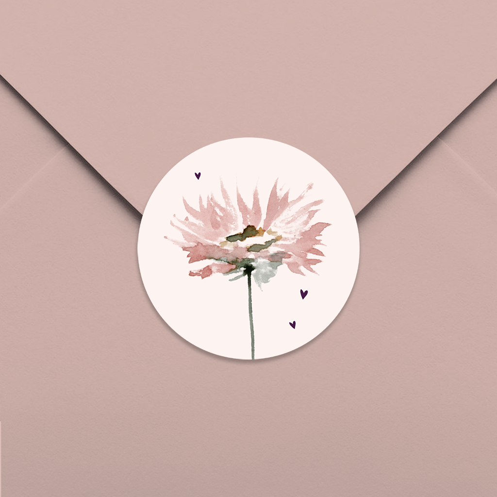 Autocollants avec fleur aquarelle sur fond rose pâle - 25 pièces