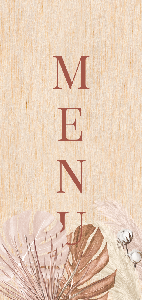 Carte de menu en bois véritable avec des feuilles de couleur bronze