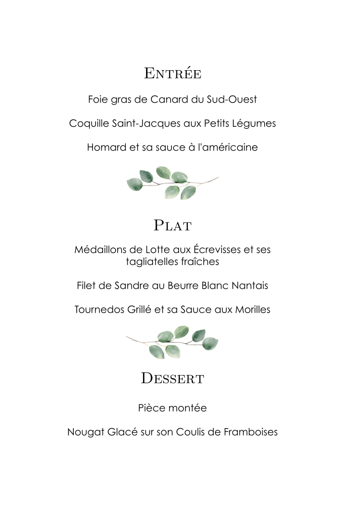 Carte de menu en feuille d'or avec des feuilles et des cœurs à l'aspect aquarelle