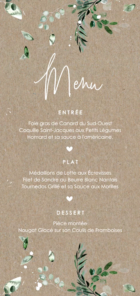 • Si vous désirez une dorure métallisée, choisissez un modèle avec un fond impression kraft, car cette technique d’impression n’est pas disponible sur du véritable papier kraft.