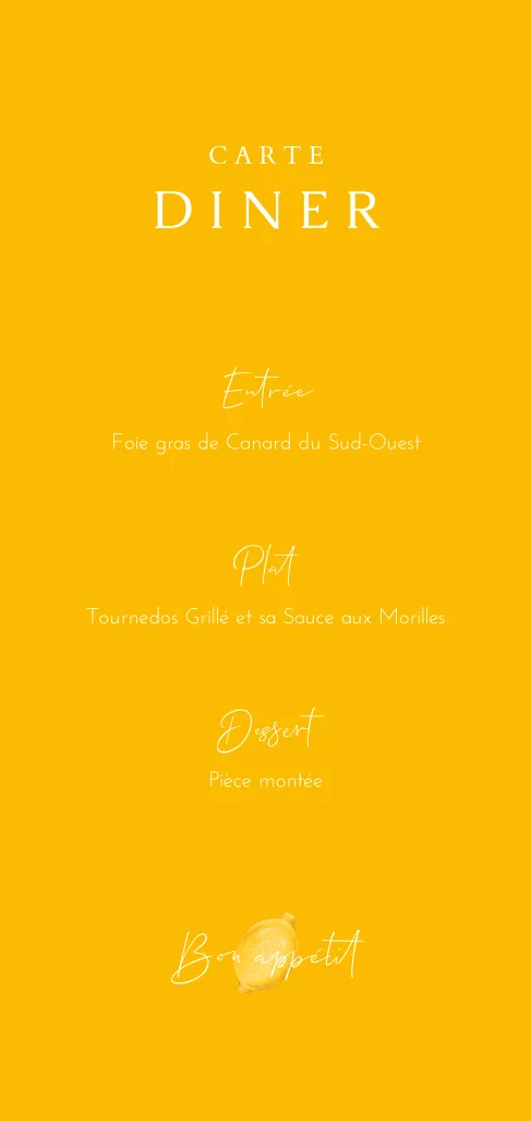 Carte de menu tendance jaune vif avec des coins arrondis.