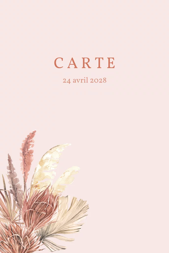 Menu rose avec de jolies fleurs à l'aquarelle