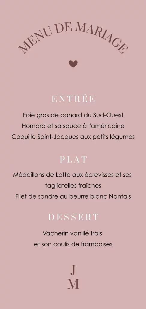 Carte de menu élégant avec un fond rose