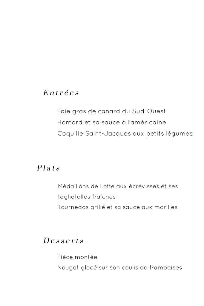 Menu minimaliste avec des dorures
