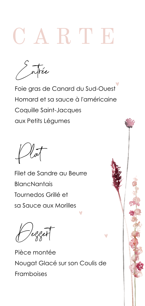 Jolie carte de menu avec des fleurs aquarelles