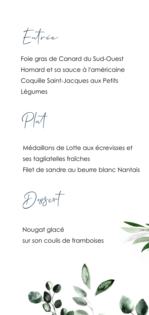 Carte de menu moderne avec des feuilles d'eucalyptus