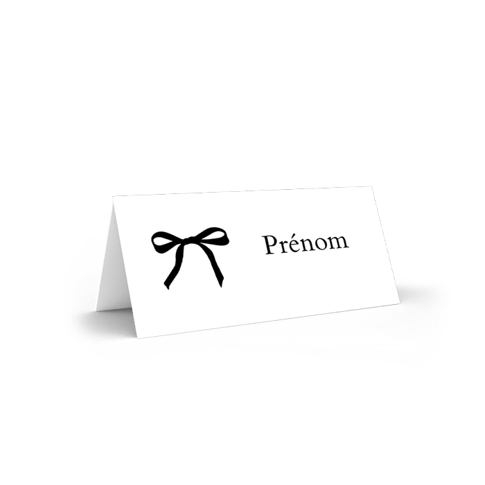 Élégants marque-place avec petit nœud noir, facile à personnaliser par planche de 15.