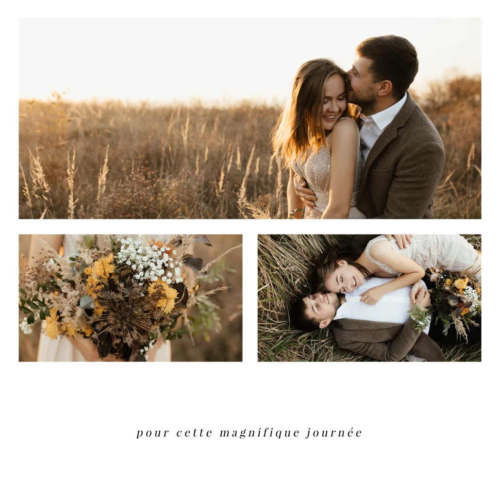Les cartes de remerciement de mariage devraient être envoyées de préférence 2 à 8 semaines après le mariage. Vous aurez alors eu le temps de déballer tous les cadeaux et de remercier personnellement vos invités - vous pourrez également personnaliser vos remerciements avec les plus belles photos de la cérémonie et de la réception. En raison de la découpe des cartes, il peut y avoir une différence de largeur de 1 à 3 mm (à gauche/droite et en haut/en bas) sur le cadre. Astuce : concevez la marge aussi grande que possible pour que cette différence éventuelle ne soit pas visible.