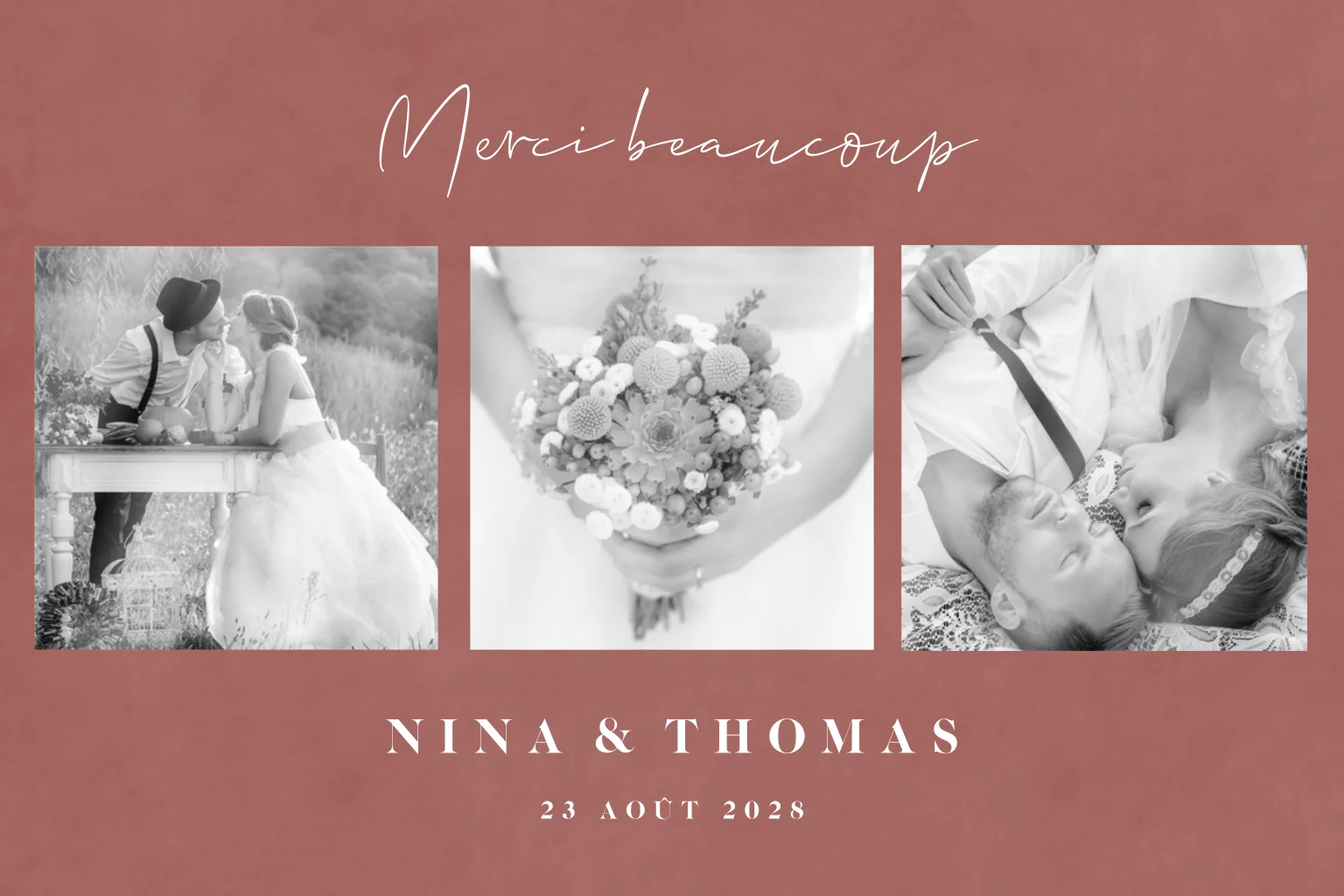 Carte de remerciement élégante avec photos et fond aspect velours