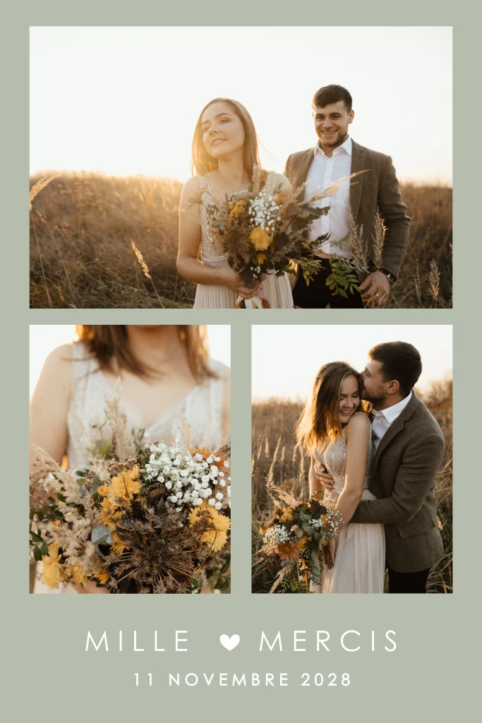 Carte de remerciement discrète avec photos et dorure