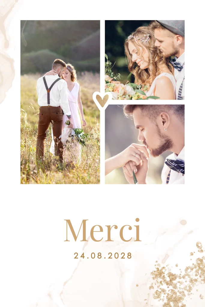 Carte de remerciement avec des détails rosés et dorés et des photos