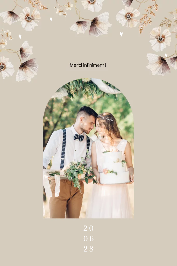 Carte de remerciement élégante en beige avec de jolies fleurs