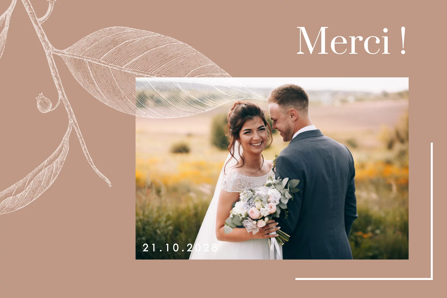 Carte de remerciement élégante avec esquisse de feuille et photo