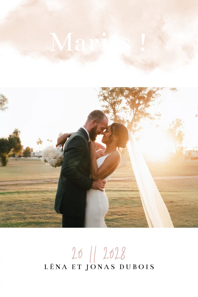 Carte de remerciement avec photo et détails dorés