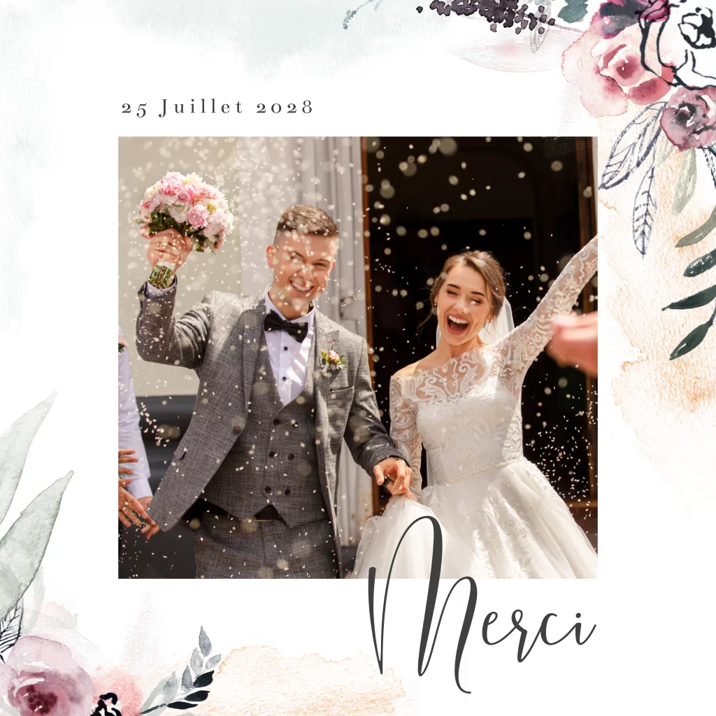 Carte de remerciement avec de jolies fleurs en aquarelle.