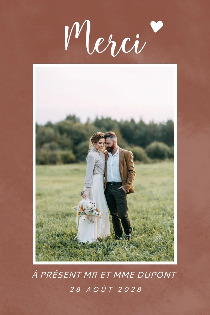 Carte de remerciement avec une teinte rouge et une photo