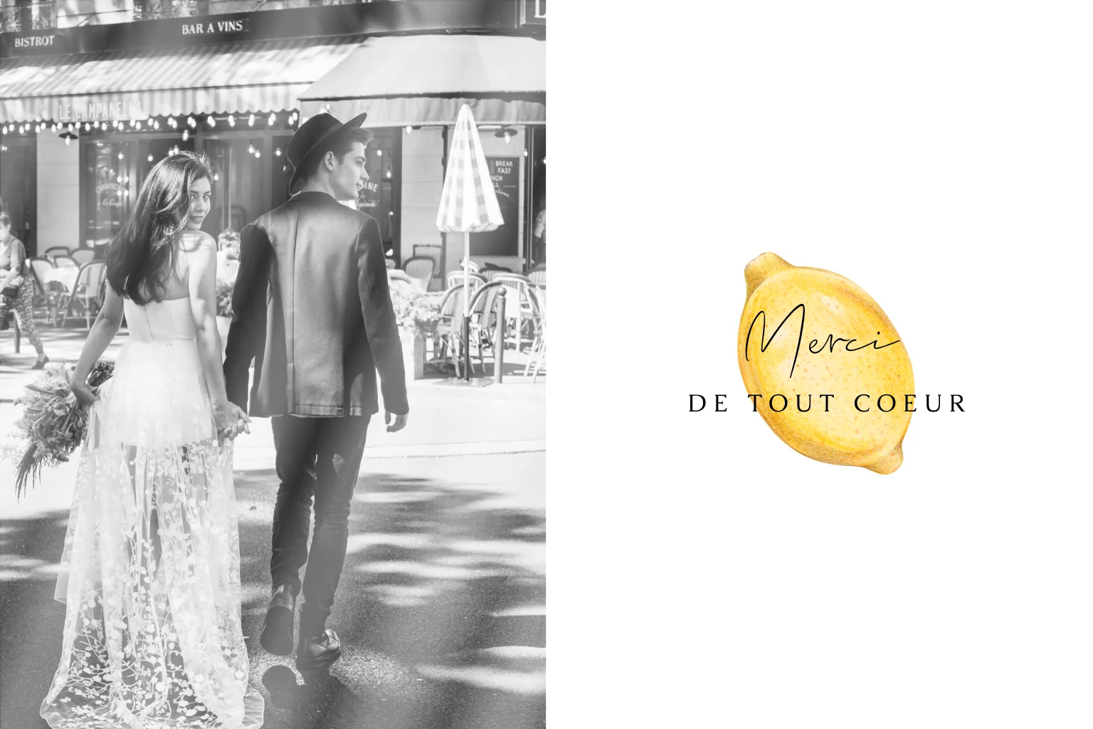 Carte de remerciement tendance avec des citrons et des coins arrondis.